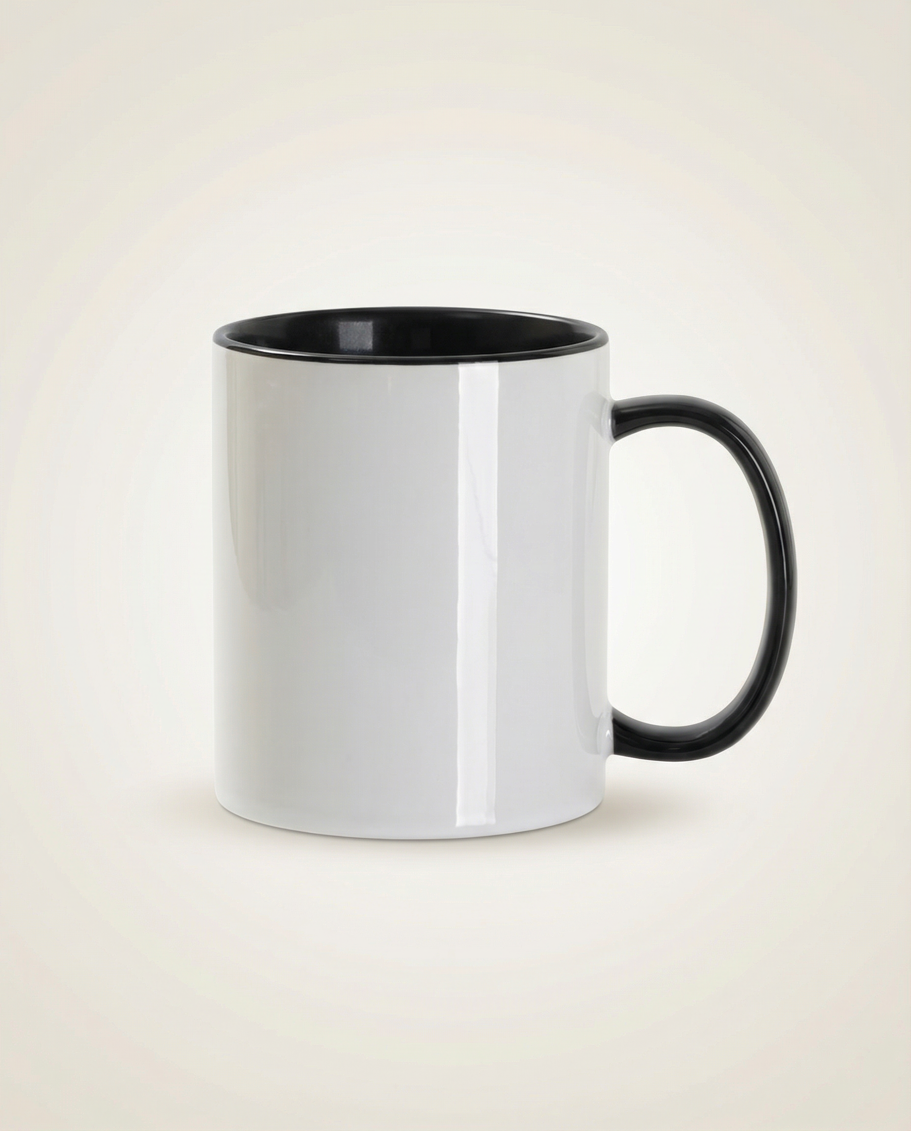 Color: White mug with black handle